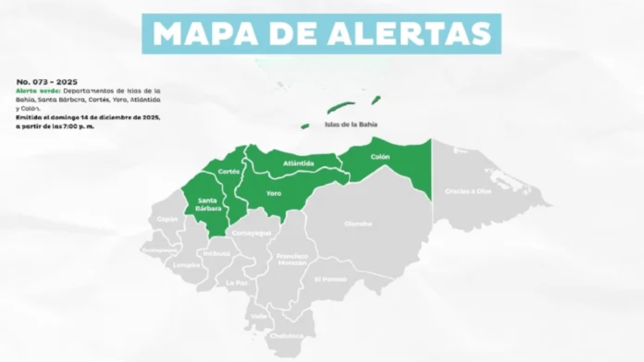 Tegucigalpa, Honduras.- La Secretaría de Estado en los Despachos de Gestión de Riesgos y Contingencias Nacionales (Copeco) emitió este lunes una alerta verde en los departamentos de Atlántida y Colón debido a daños en las zonas tras el paso de frentes fríos.