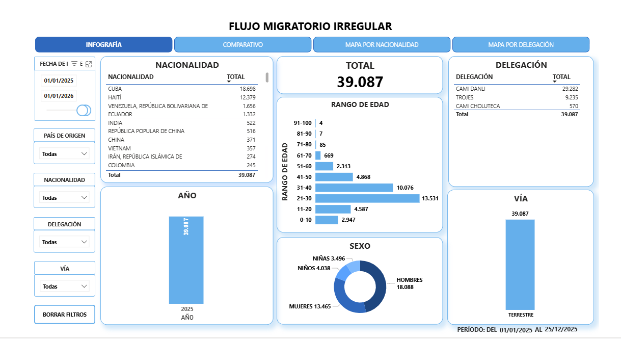 Tegucigalpa, Honduras.- Honduras cerró 2025 con 39,087 personas en condición de migración irregular registradas en el país, según cifras oficiales del Instituto Nacional de Migración (INM) correspondientes al período del 1 de enero al 25 de diciembre del año pasado.