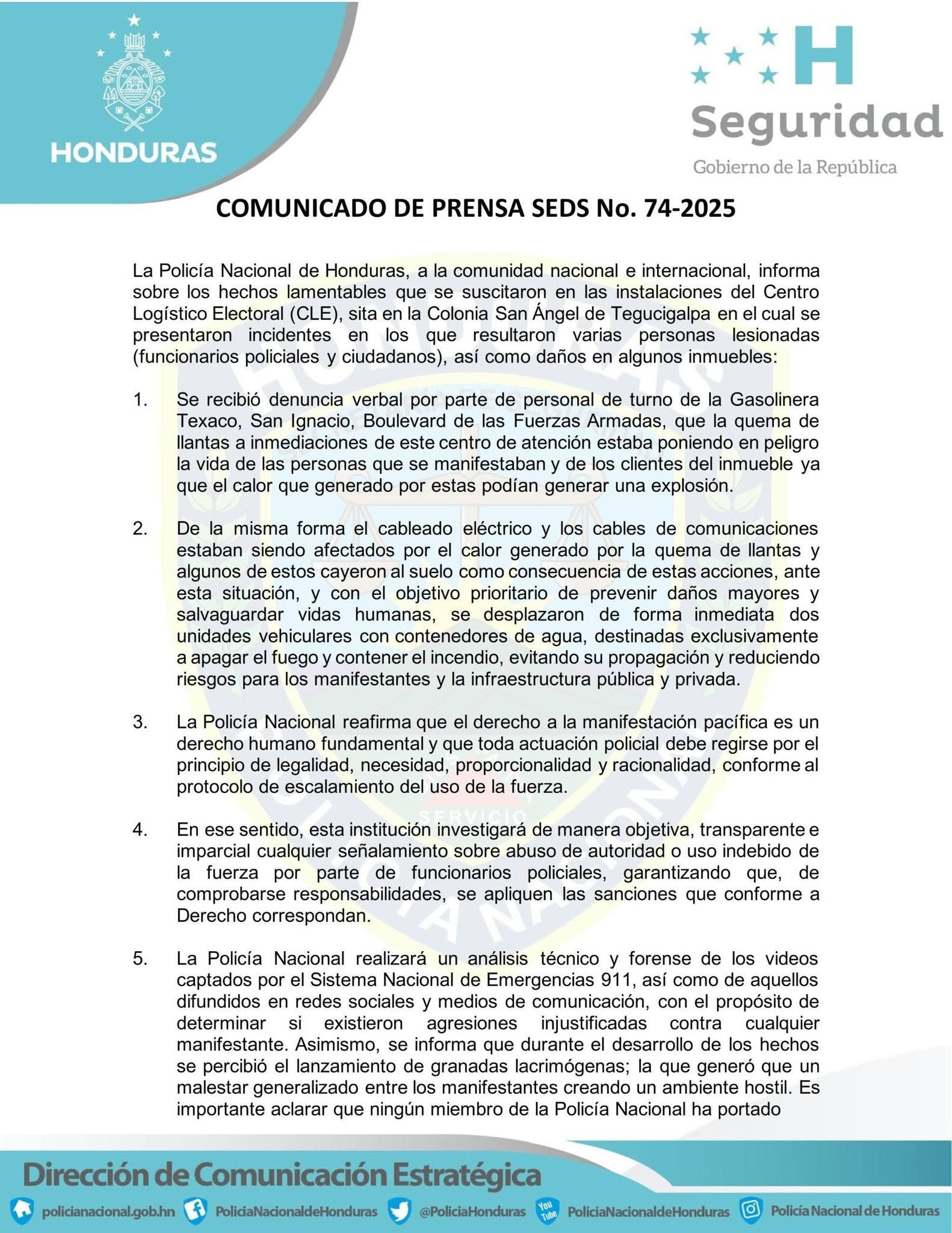 Posteriormente la Secrertaria de Seguridad dió a conocer un comunicado sobre el incidente:
