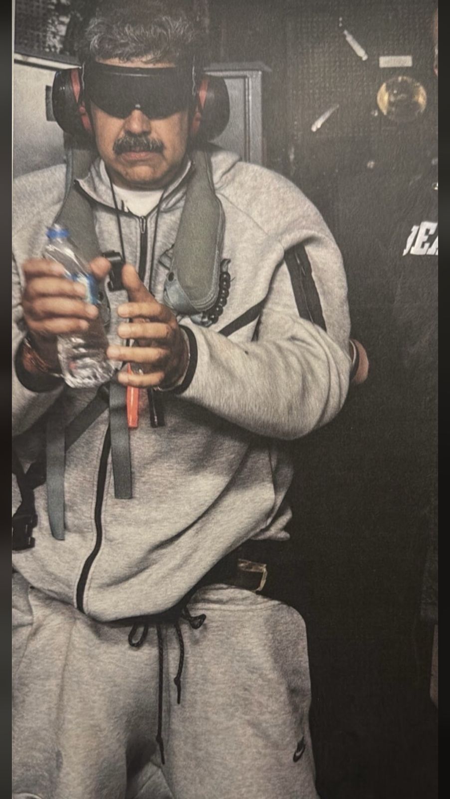 Tegucigalpa, Honduras.- La primera imagen conocida de Nicolás Maduro tras su captura por Estados Unidos lo muestra con gafas oscuras opacas que cubren completamente sus ojos y protectores auditivos de gran tamaño, elementos que limitan su percepción visual y sonora.