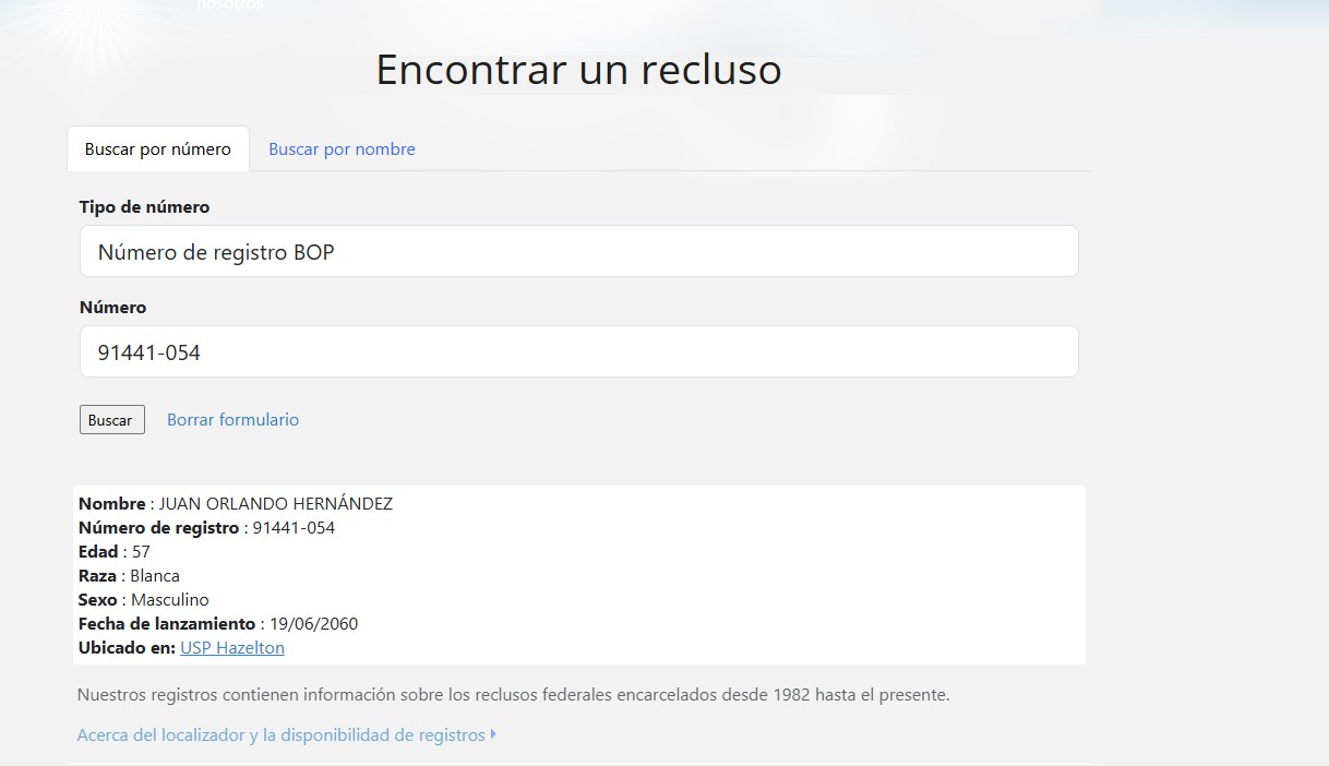 De acuerdo con los parientes consultados, el proceso de liberación estaría en marcha, aunque los registros del Buró Federal de Prisiones (BOP) aún muestran a Hernández como privado de libertad.